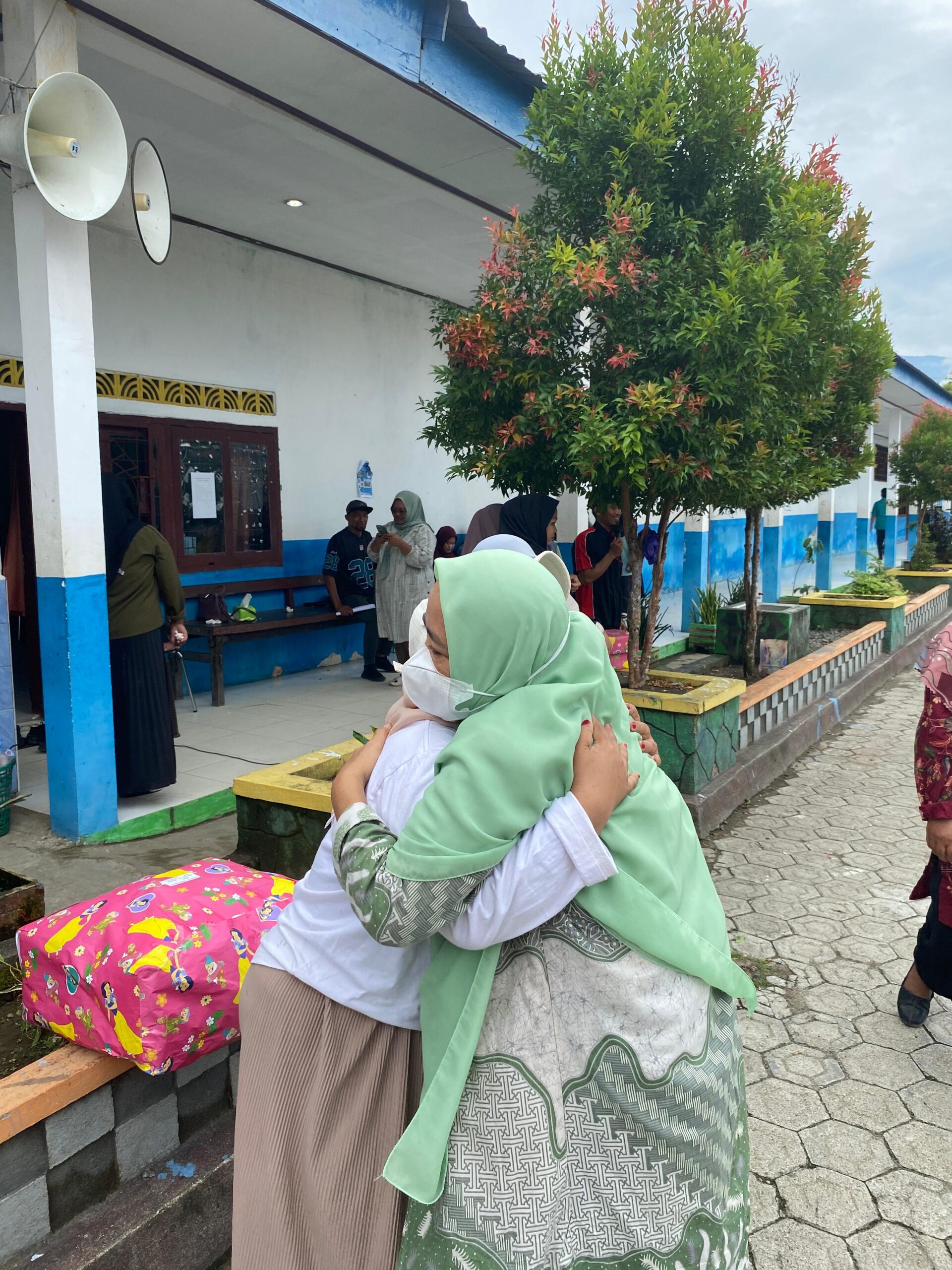 Halaman sekolah dipenuhi suasana haru pada acara perpisahan dua guru tercinta, Ibu Muriyanti dan Ibu Gusniar, yang akan melanjutkan tugas ke sekolah lain setelah bertahun-tahun mengabdi. Seluruh guru, staf, dan siswa berkumpul untuk memberikan penghormatan terakhir sebelum mereka meninggalkan sekolah ini.