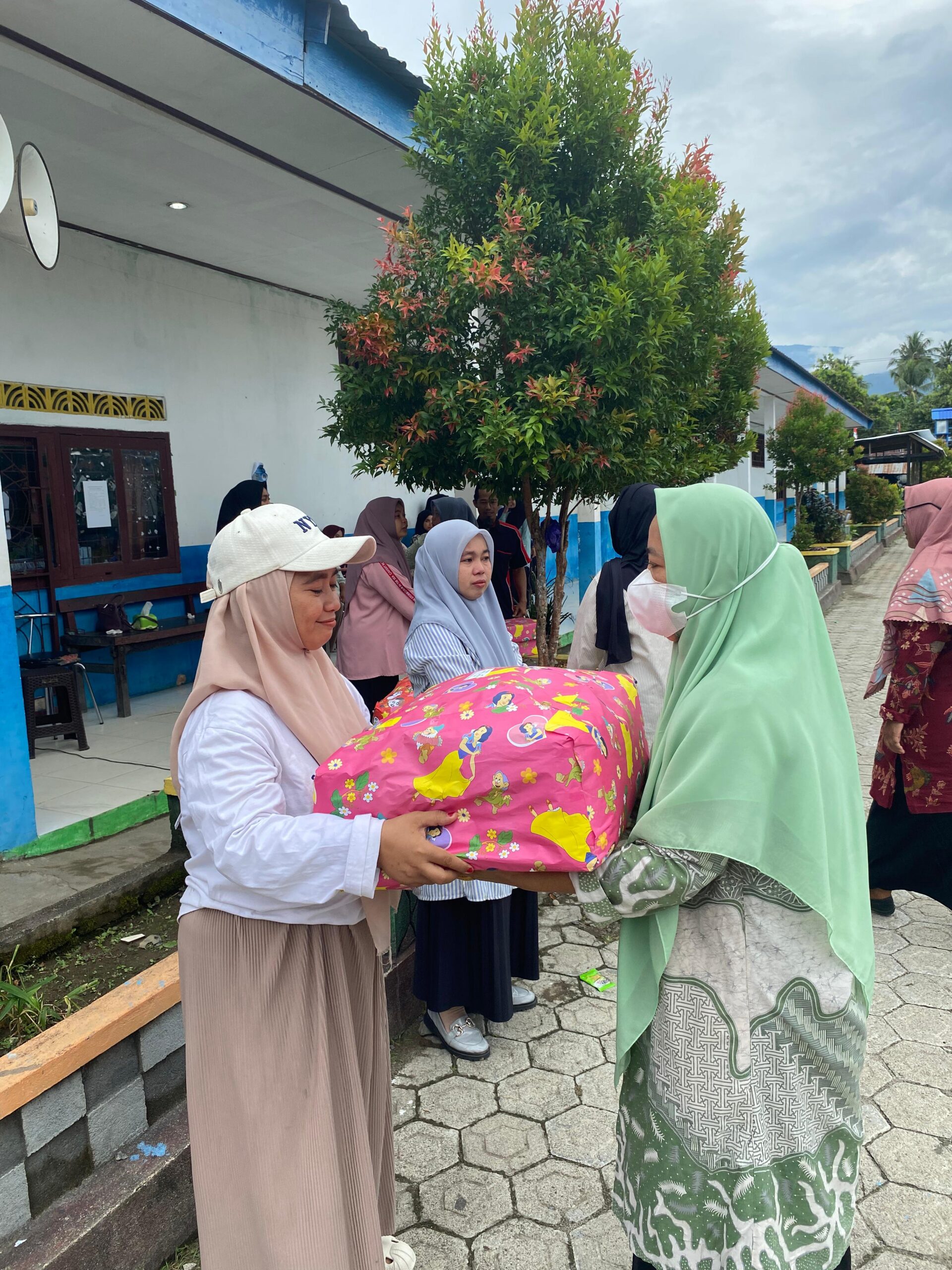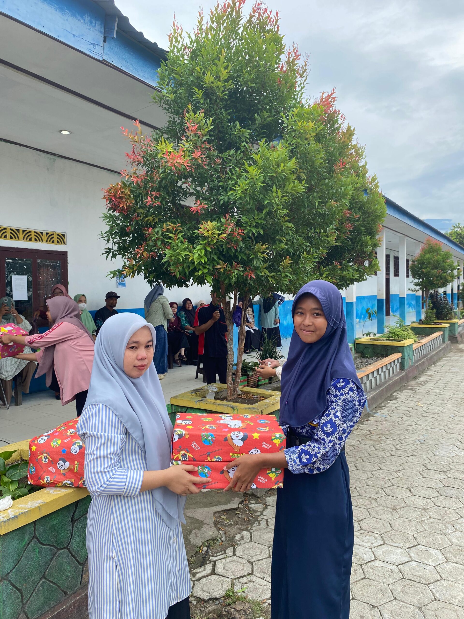 Acara dimulai dengan penyerahan kenang-kenangan dari pihak sekolah kepada Ibu Muriyanti dan Ibu Gusniar. Momen ini disertai pelukan hangat, salam hormat, serta senyum bercampur air mata dari rekan guru dan para siswa. Terlihat jelas rasa kehilangan yang dirasakan oleh seluruh warga sekolah.